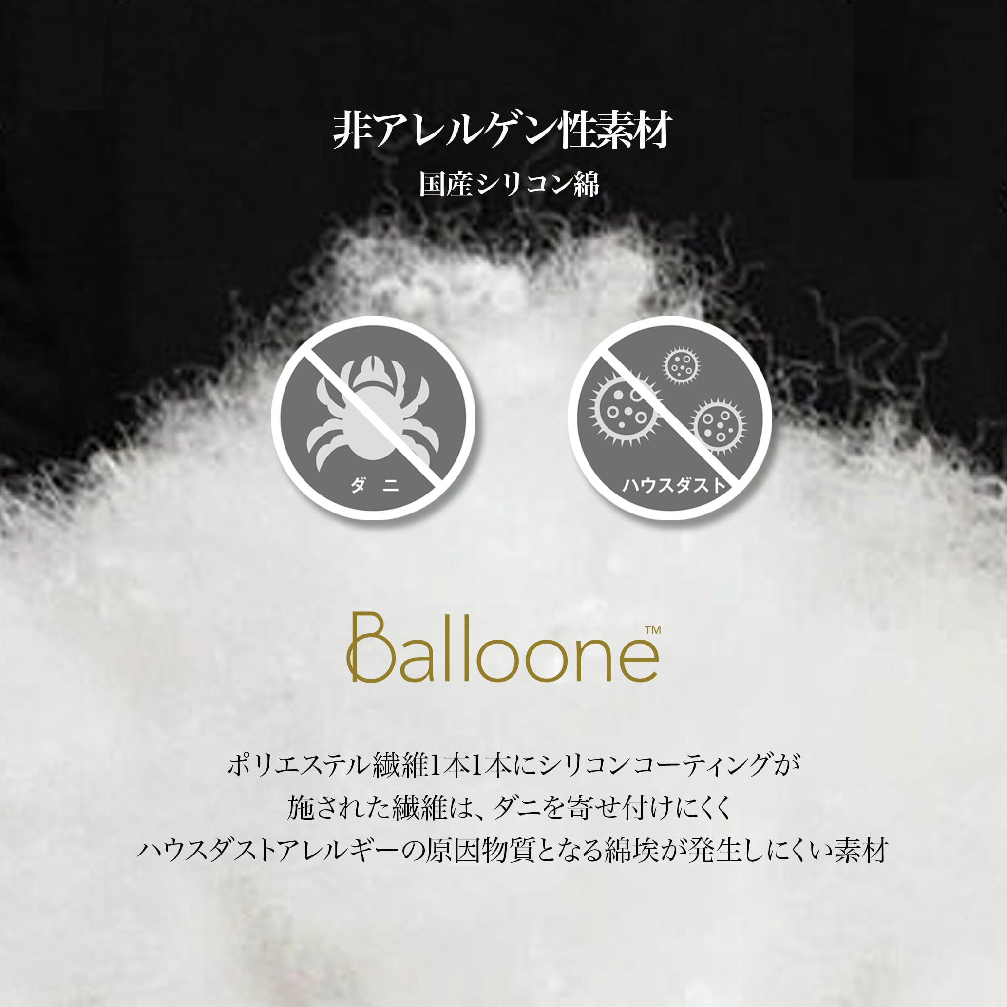 中空構造の繊維一本一本にシリコンコーティングが施された国産のシリコン綿を採用。